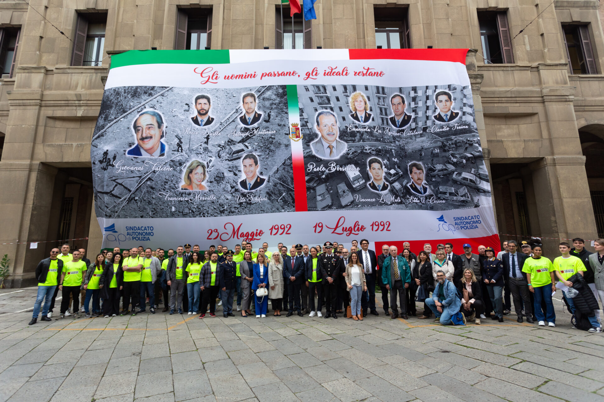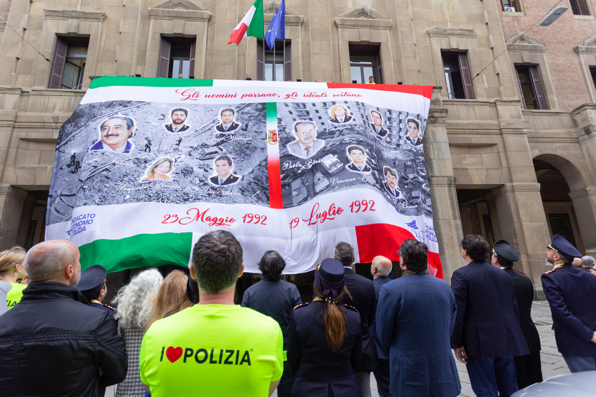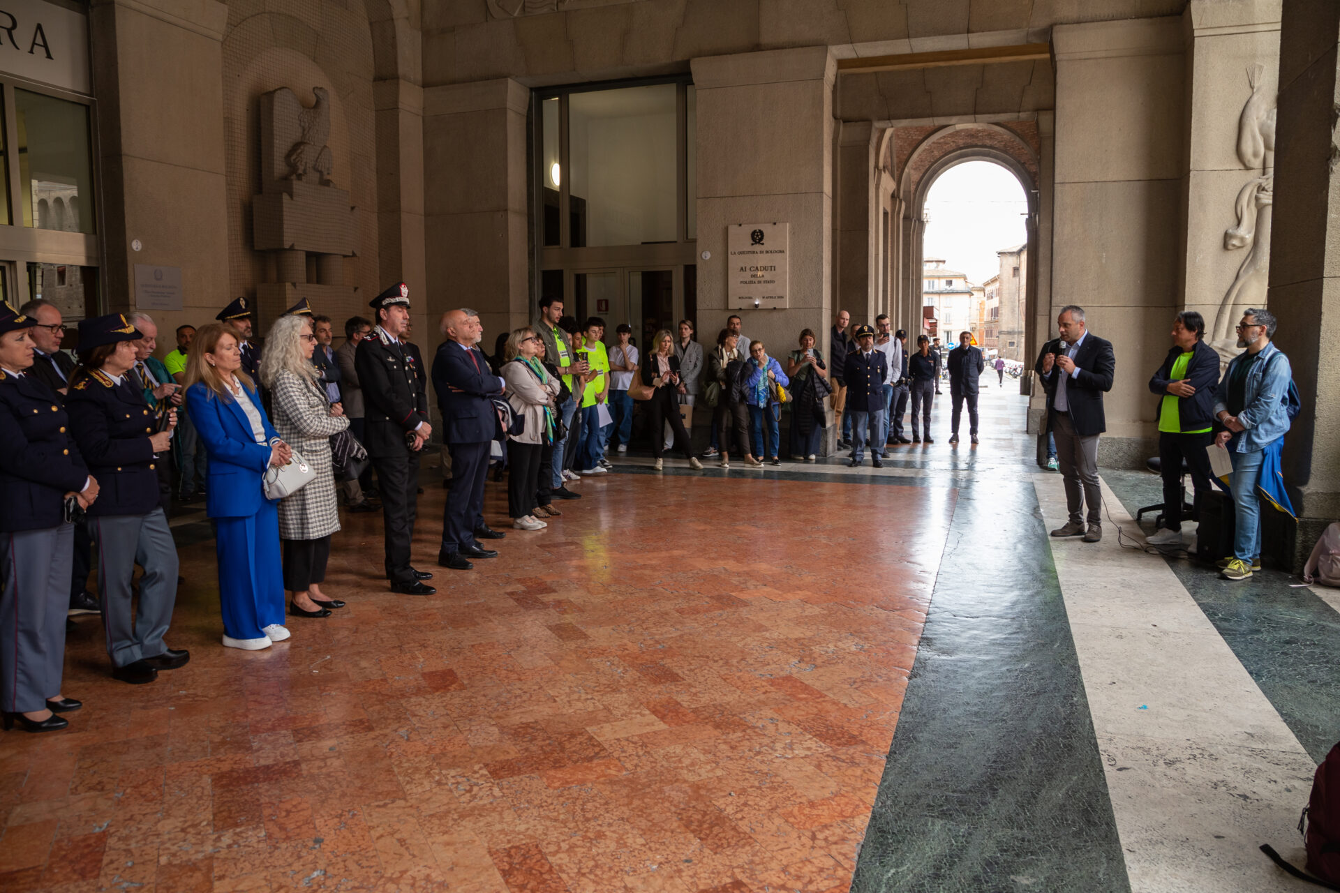 Anche Bologna ha celebrato il Memorial Day per ricordare tutti coloro che hanno perso la vita per mano della criminalità organizzata e del terrorismo. Principali attori della manifestazione, che si è tenuta lo scorso 20 maggio, sono stati gli studenti del Liceo Malpighi di Bologna, accompagnati dal Dirigente Professor Marco Ferrari, ed una rappresentanza degli studenti del Liceo Minghetti, che hanno portato diversi messaggi di impegno nella lotta alle mafie e alla criminalità. Presenti autorità militari di Carabinieri e Guardia di Finanza, Dirigenti e Funzionari di Polizia, politici locali e delegati sindacali del SAPPE, oltre a Don Massimo Vacchetti, Direttore dell’Ufficio Pastorale per Sport e turismo. Da parte sua, il Segretario Provinciale Tonino Guglielmi ha voluto ringraziare le autorità presenti alla commemorazione: Roberto Mazzini Segretario Nazionale del SAP, il Questore di Bologna Dott. Antonio Sbordone, per la Procura della Repubblica i Procuratori Aggiunti Dott. Francesco Caleca, Dott.ssa Morena Plazzi e Dott.ssa Lucia Russo, per la Regione l’Avvocato Stefano Caliandro – Consigliere Regionale e Presidente della 3^ Commissione, per il Comune di Bologna la Dott.ssa Giulia Sarti – Delegata alla legalità democratica e alla lotta alla mafia, in rappresentanza del Magnifico Rettore e dell’Università il Prof. Antonello De Oto, per il Vice Presidente Vicario Consiglio dell’Ordine Avvocati Avv. Paolo, la Presidente di AIGA Avv. Bibiana Francesca Trigiani, la Vice Presidente Camere Penali Avv. Laura Becca, il Cappellano della Polizia Padre Domenico Vittorini, la Prof.ssa Marina Orlandi vedova del Prof. Biagi. Al termine degli interventi delle, agli studenti è stata affidata, come testimone di memoria, la corona deposta alla lapide dei caduti. Successivamente, sulla facciata della Questura è stato calato uno striscione raffigurante i luoghi e le vittime della Stragi di Capaci e Via d’Amelio. L’evento si è concluso con la Camminata della Memoria raggiungendo il Santuario della B.V. di San Luca sui colli di Bologna.