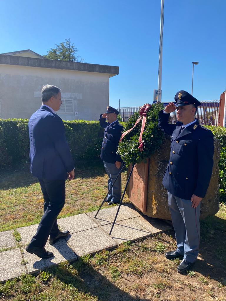 Si è svolta questa mattina ad Oristano, nell’ambito delle celebrazioni afferenti al “Memorial Day 2023”, una cerimonia di commemorazione in onore di tutte le vittime della Polizia di Stato con la deposizione di una corona d’alloro al cippo dei caduti. Presenti all’iniziativa, organizzata dalla Segreteria Provinciale del SAP di Oristano, oltre al Segretario Generale Stefano Paoloni e ai Segretari Nazionali Giuseppe Coco e Cristiano Bianchini, il Prefetto di Oristano Dott. Giuseppe Rania, il Questore di Oristano Dott. Giuseppe Giardina, il Vicario del Questore Dott.ssa Adriana Cammi, il Dirigente del Reparto Prevenzione Crimine Dott. Salvatore Pisano, il Direttore del C.A.I.P. di Abbasanta Dott. Roberto Pietrosanti e il Cappellano della Polizia Don Marco Contini.