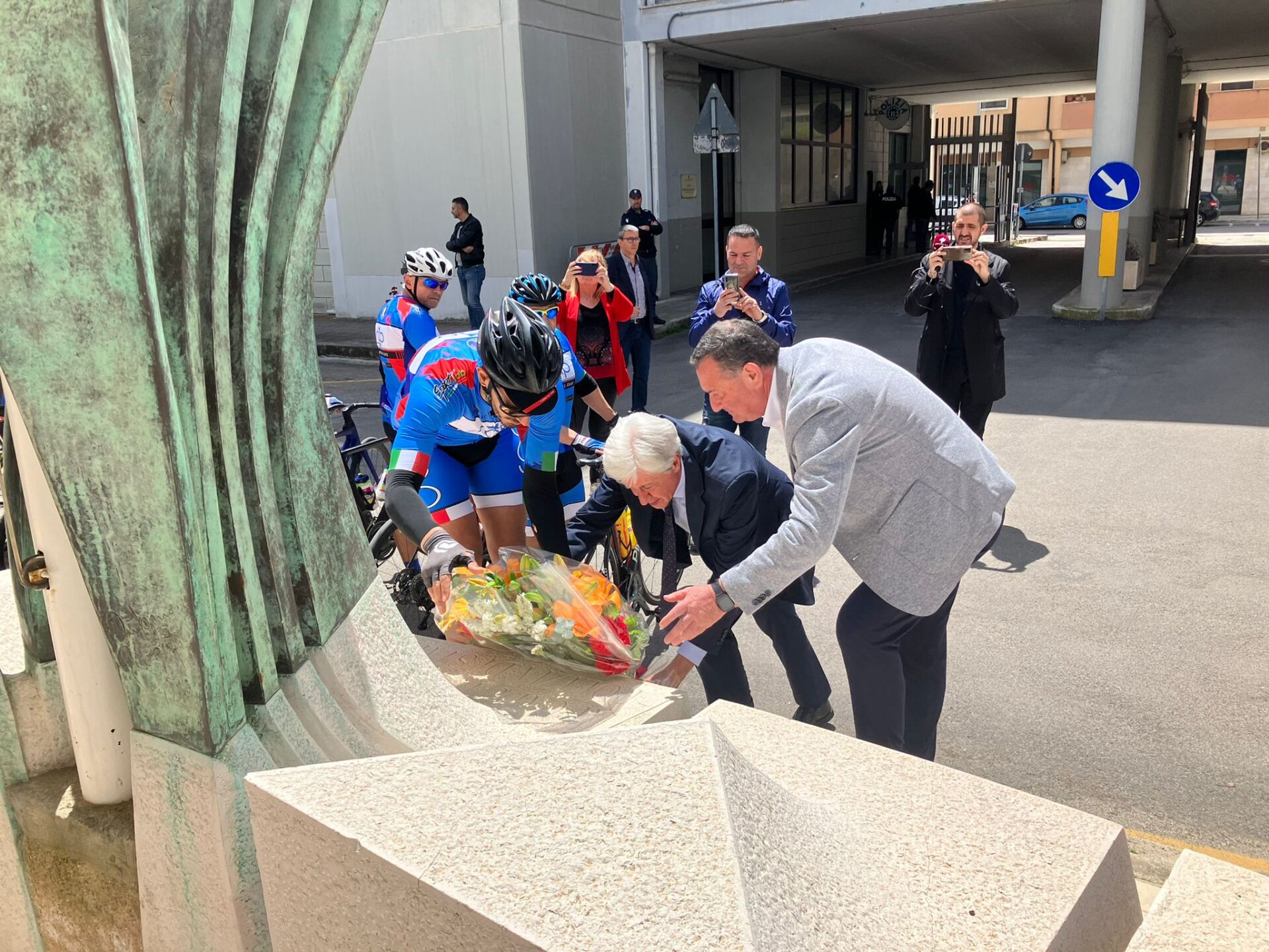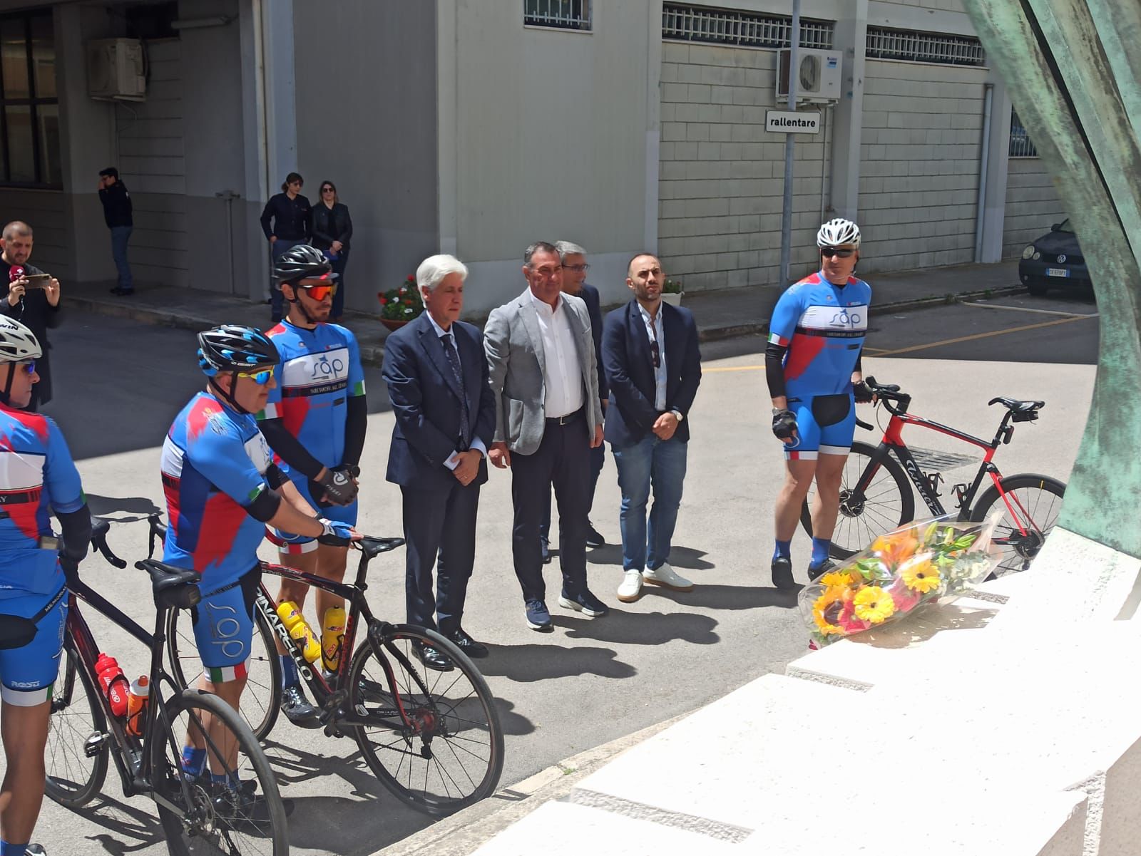 La Staffetta della Memoria, composta da una delegazione di ciclisti del SAP partiti da Collepasso (LE) e diretti alla volta del Santuario di San Michele Arcangelo (FG) (che raggiungeranno il 19 maggio ndr), nella giornata di ieri ha fatto tappa dapprima presso la Questura di Brindisi, ove alla presenza del Questore Dr. Annino Gargano ed al direttivo della Segreteria Provinciale SAP, ha partecipato alla deposizione di una composizione floreale al monumento ai caduti della Polizia di Stato.